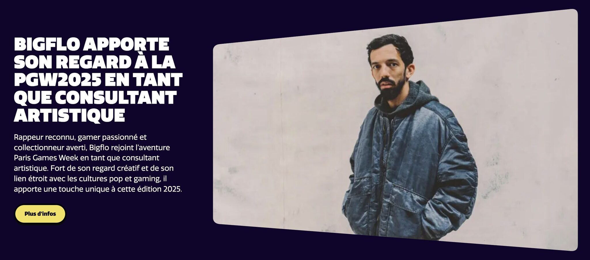 Cette volonté de décloisonner le jeu vidéo s’incarne aussi à travers Bigflo, désigné à la fois parrain et consultant officiel de l’édition 2025. Un choix qui, au-delà du symbole, s’avère plus ou moins cohérent. Passionné de gaming et de pop culture, il a activement participé à la conception du logo, des animations et à l’ambiance générale du salon. Sa patte se ressent dans les liens tissés entre musique et jeu vidéo, ses interventions publiques et la programmation de concerts au Dôme de Paris.